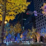 そしてこちらは、先日見かけた御堂筋のライトアップされた風景。