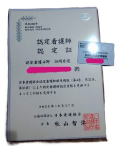 認定看護師の認定証 届きました~